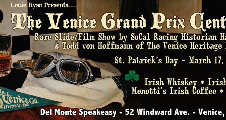 Venice Grand Prix Centennial Event Anonymous March 17, 2015 Loading Map.... Townhouse52 Windward Ave. - VeniceEvents 33.9871768 -118.47262949999998 Date/Time Date(s) - 03/17/20155:00 pm - 7:00 pm Location Townhouse Categories Arts and culture Rare Slide/Film Show by SoCal Racing Historian Harold Osmer & Todd von Hoffman of the The Venice Heritage Museum. For more info: http://www.hopublishing.com
